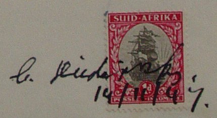 Anna Christina (Anna) DIEDERICKS [Parents] 1, 2, 3, 4, 5 was born c. 28 Oct 1864 in Buemersdam, Distr. Aberdeen, Kaapprovinsie, Suid-Afrika 5. She died 5 28 Feb 1946 in Huis van Mev. M.E.M. CRAILL, Douglas, Herbert, Kaapprovinsie, Suid-Afrika. Anna married 5 Theunis Johannes Pieter (Marthinus) HOLTSHOUSEN on >1925 in Plaas Weltevrede, Distr. Herbert, Kaapprovinsie, Suid-Afrika. Other marriages:ESTERHUIZEN, Jan Christoffel Anthonie (Jan) |